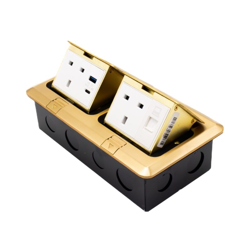 APU13-2-D2 – Admore 2 Gang 13A Socket with 2 Data Ports Chrome Popup Socket