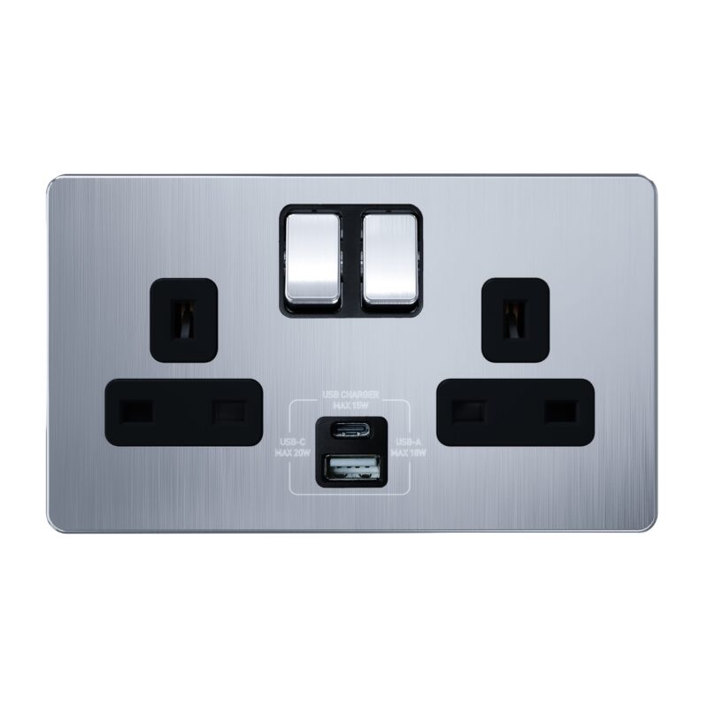 APU13-2-D2 – Admore 2 Gang 13A Socket with 2 Data Ports Chrome Popup Socket