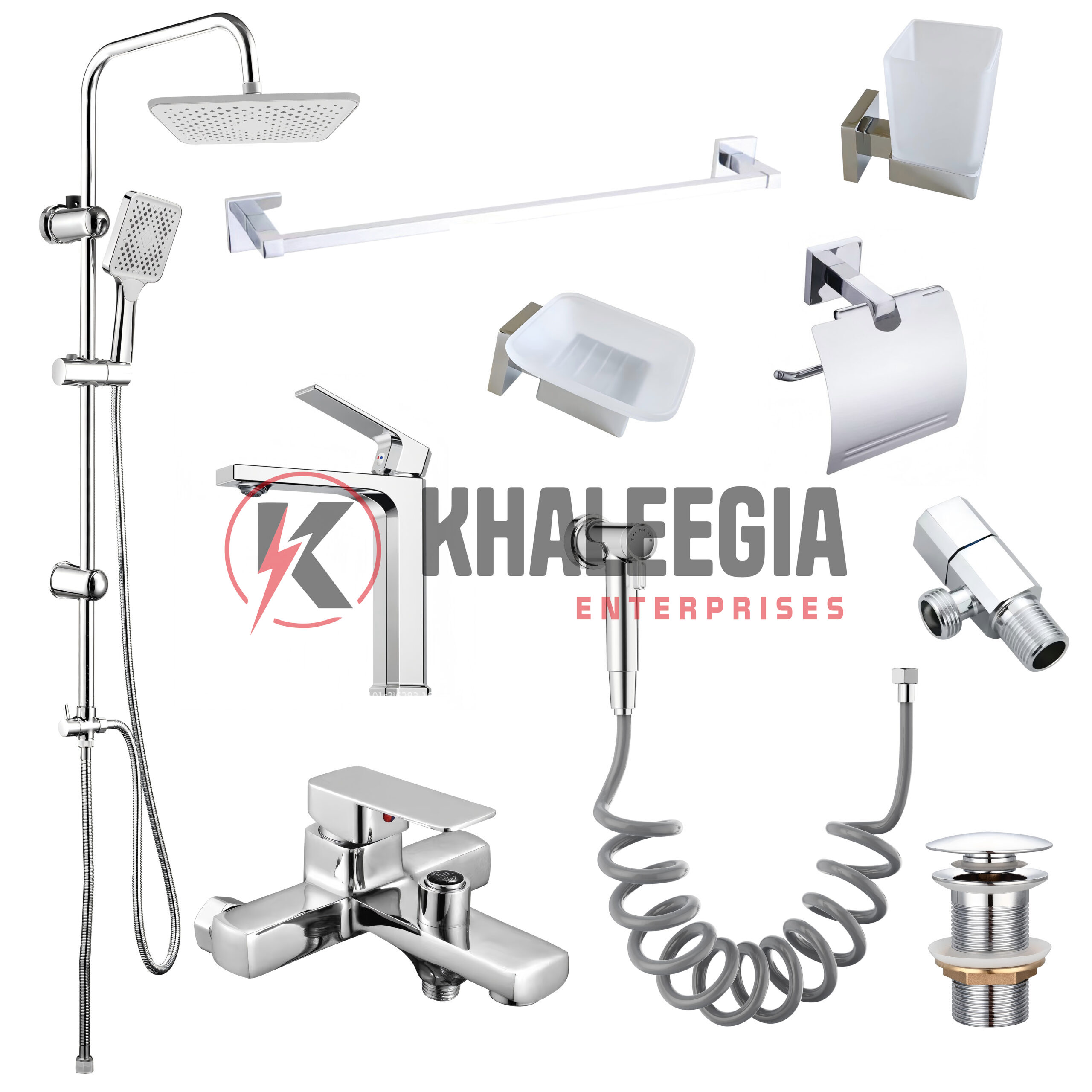 Shower Column, Bath Mixer, Basin Mixer, Shattaf, 4-pc Acc. Set, Waste, 3x Angle Valves |
