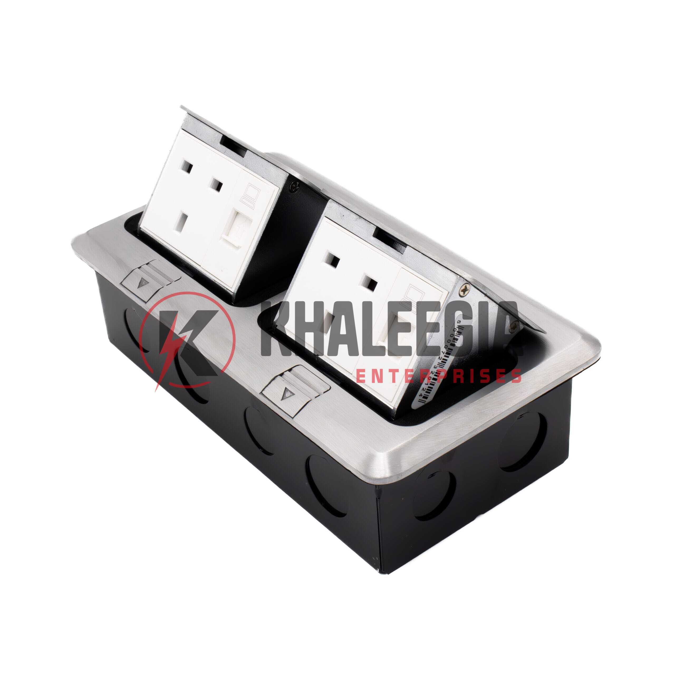 APU13-2-D2 – Admore 2 Gang 13A Socket with 2 Data Ports Chrome Popup Socket