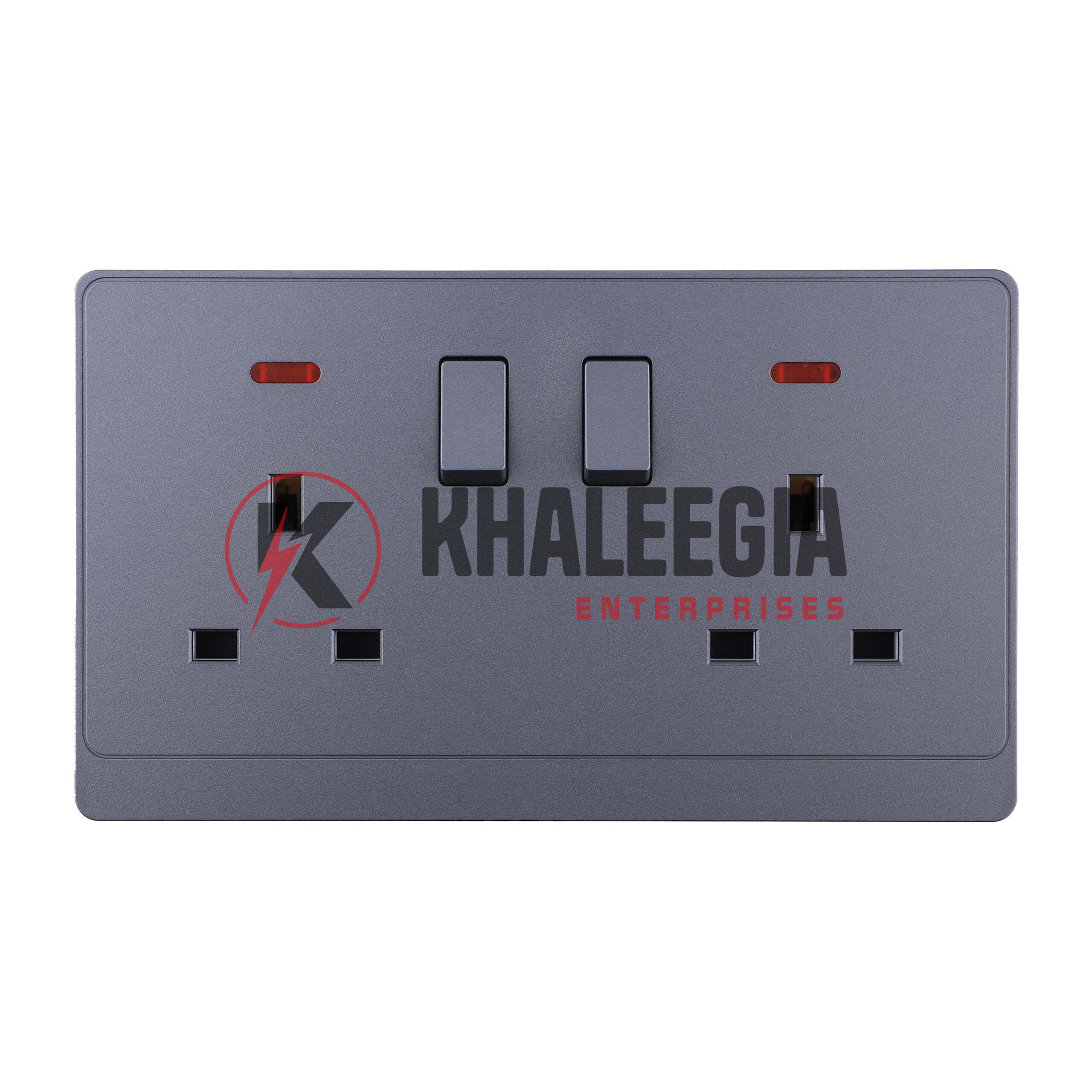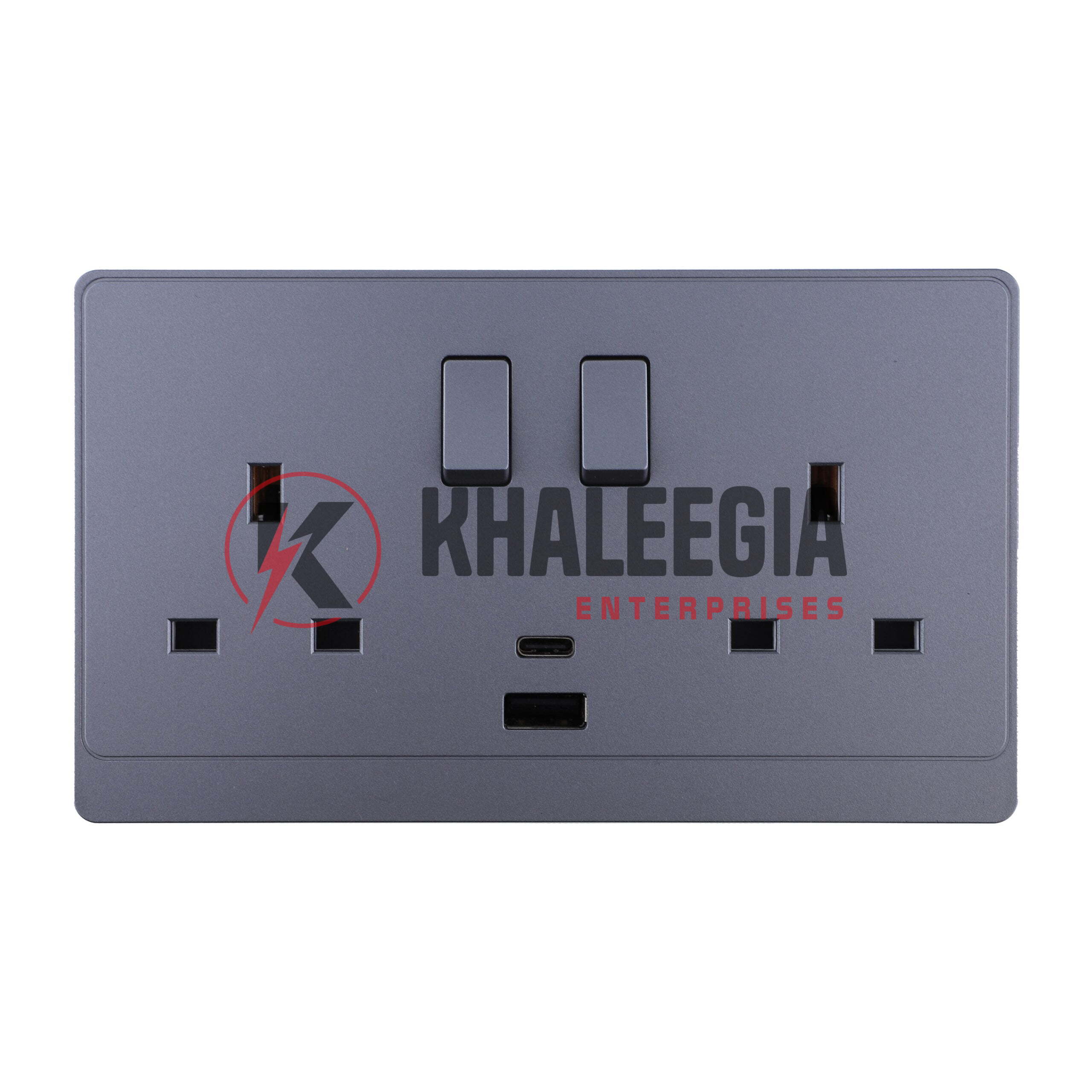 P-S408 – 13A 2 Gang Switch Socket With A&C Port – PC Classic Range: Grey