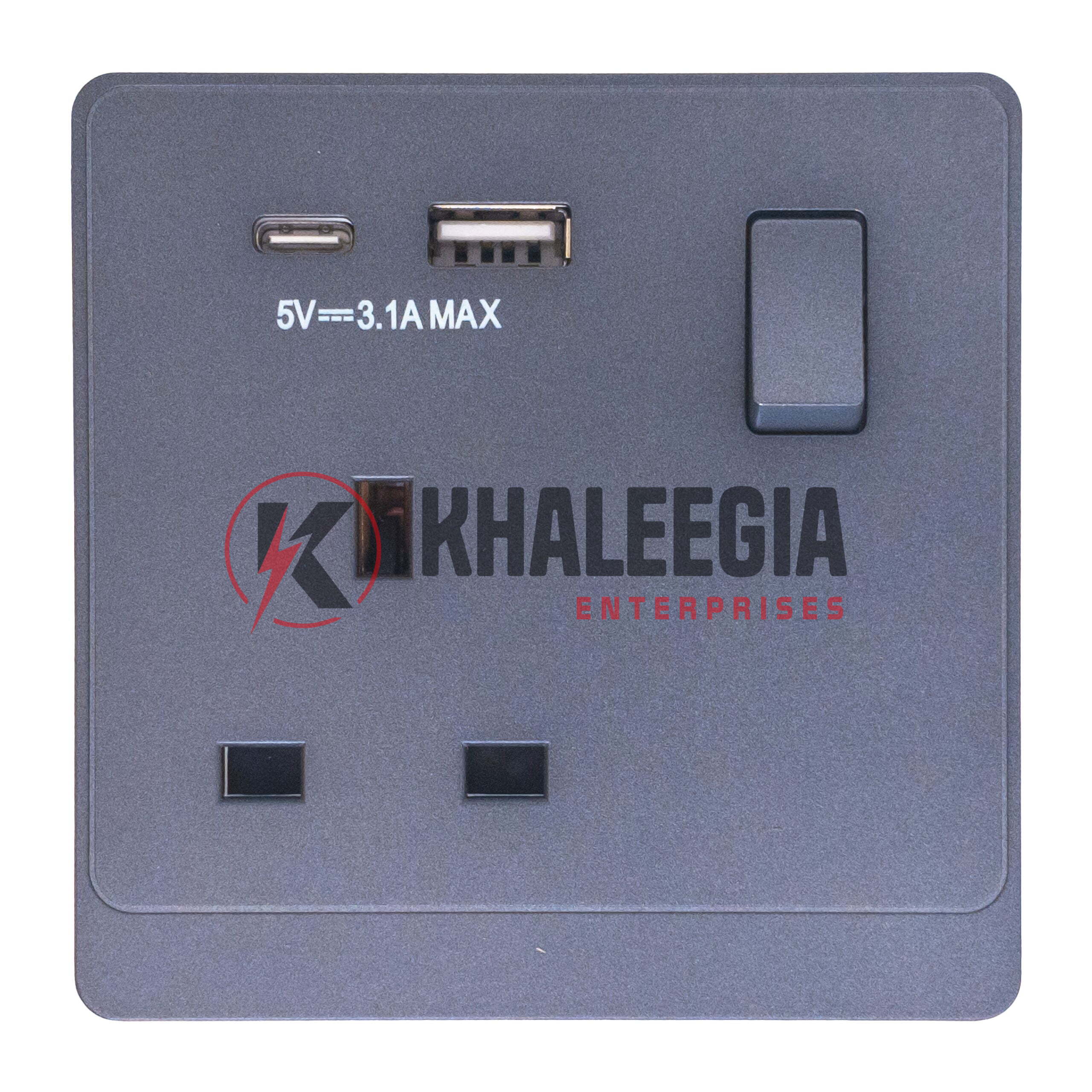 P-S407 – 13A 1 Gang Switch Socket With A&C Port – PC Classic Range: Grey