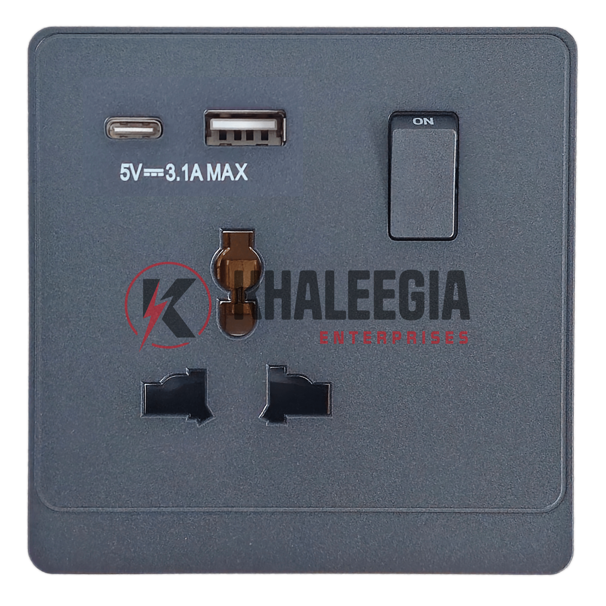 P-S424 – 1 Gang Universal Socket A&C Port – PC Classic Range: Grey