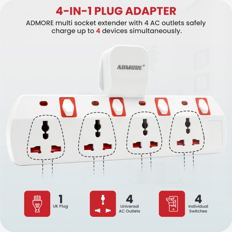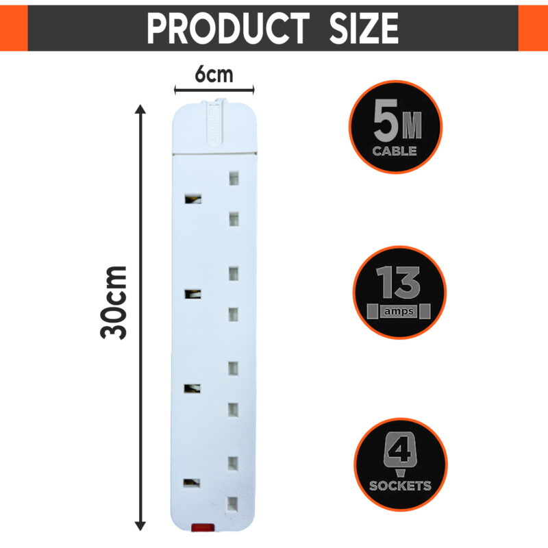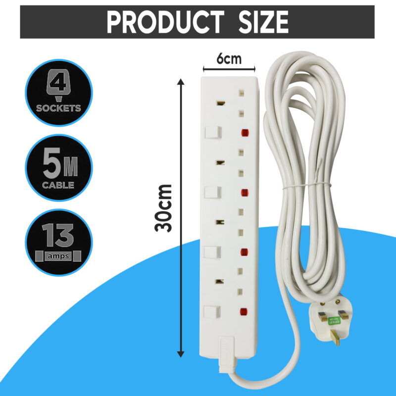4 Gang Outlets: Equipped with four Type G (3 Pin UK) outlets, this extension socket allows you to power multiple devices simultaneously.